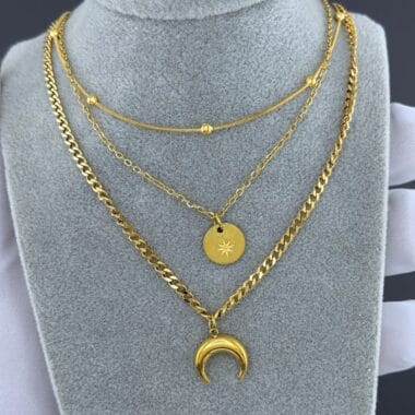 Pulseiras e colares senhora elegantes, com acabamento premium banhado a ouro 18k e aço de alta qualidade. Peças sofisticadas ideais para valorizar qualquer look.