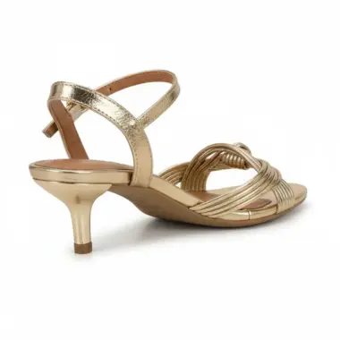 O design com tiras finas e detalhe em nó confere um toque feminino e delicado. O acabamento dourado adiciona brilho e requinte, tornando este modelo perfeito para ocasiões especiais.