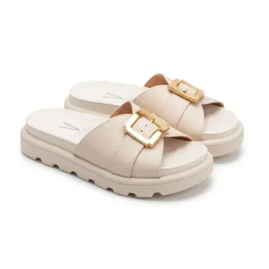 Slide plataforma branco senhora com fivela dourada elegante