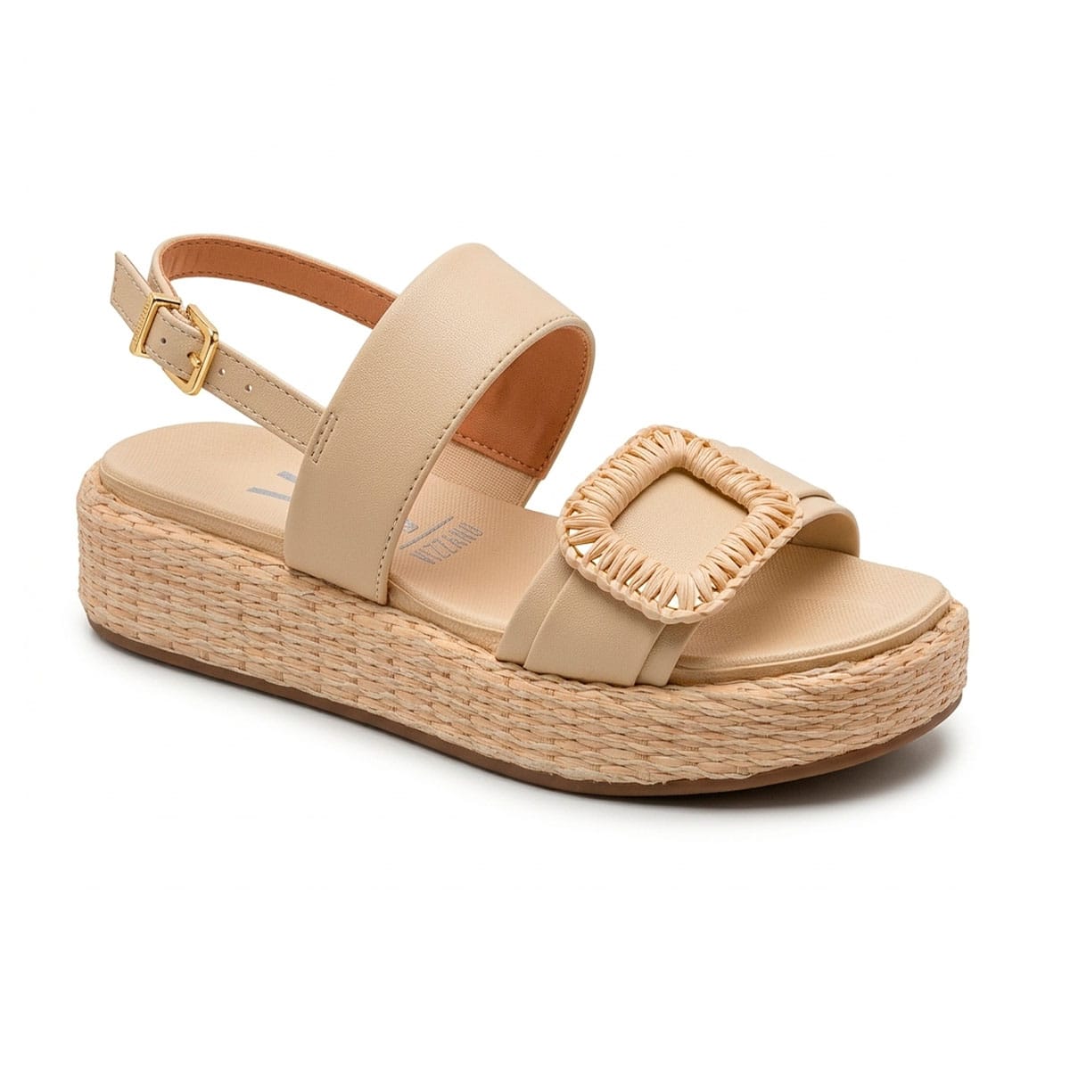 Sandália plataforma em palhinha Vizzano bege, perfeita para um look elegante e confortável nos dias de verão. Com fivela decorativa e design moderno, oferece estabilidade e estilo para qualquer ocasião, do casual ao sofisticado.