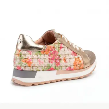 O padrão floral confere um toque feminino e exclusivo, enquanto os detalhes metálicos elevam o estilo, tornando este sneaker ideal para quem procura destacar-se com elegância.
